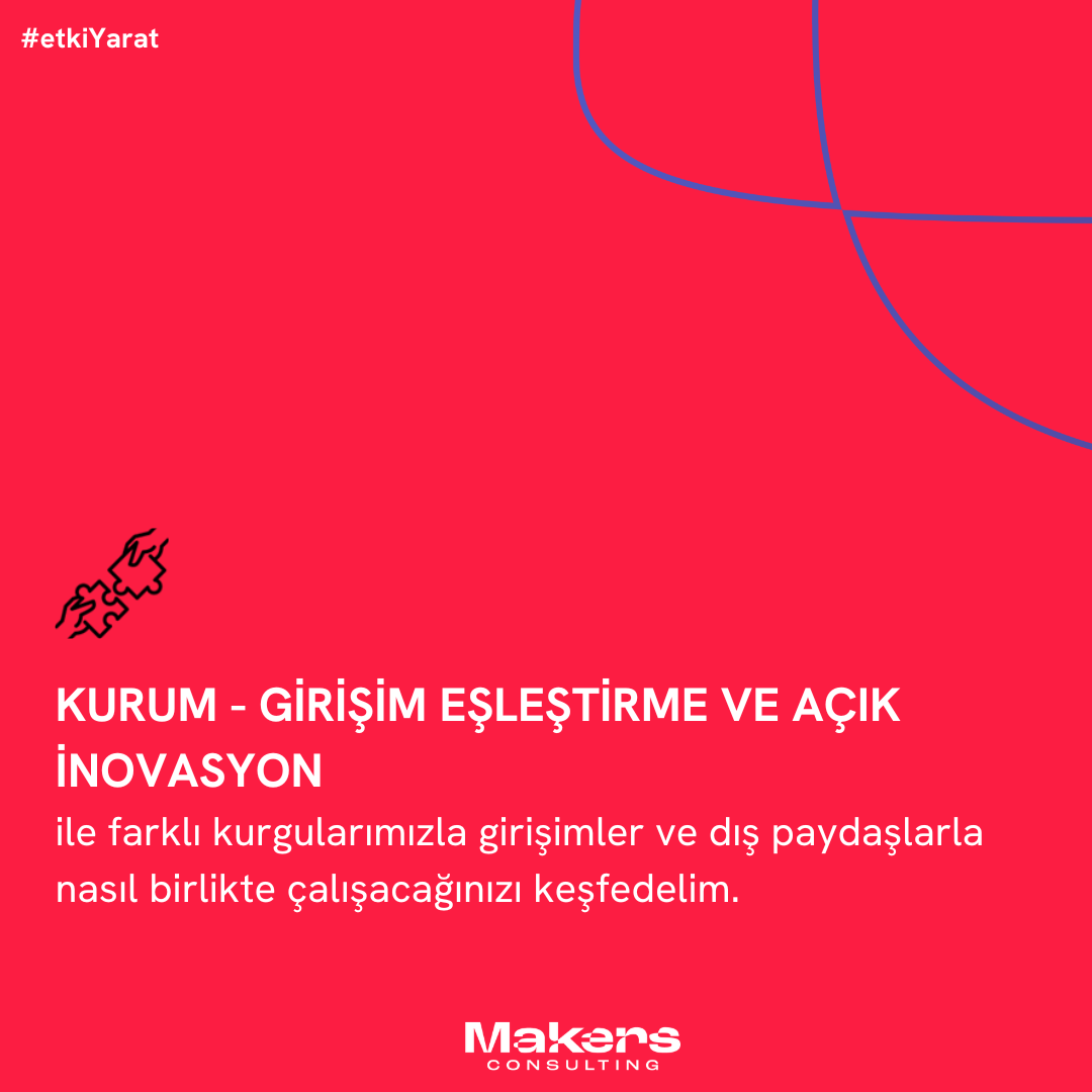 🤝 Kurum – Girişim Eşleştirme ve Açık İnovasyon ile farklı kurgularımızla girişimler ve dış paydaşlarla nasıl birlikte çalışacağınızı keşfedelim.