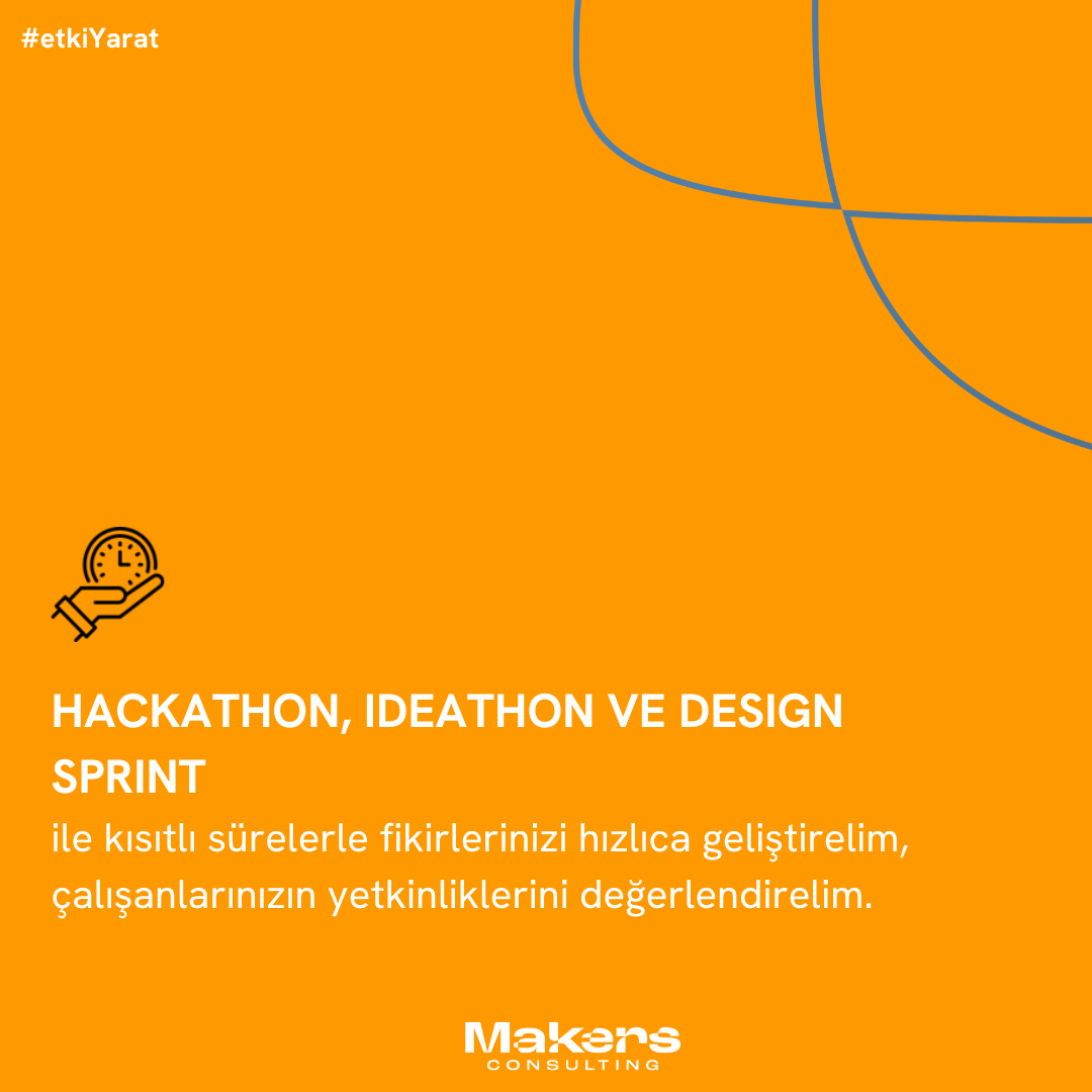 ⏳ Hackhaton, Ideathon ve Design Sprint ile kısıtlı sürelerle fikirlerinizi hızlıca geliştirelim, çalışanlarınızın yetkinliklerini değerlendirelim.